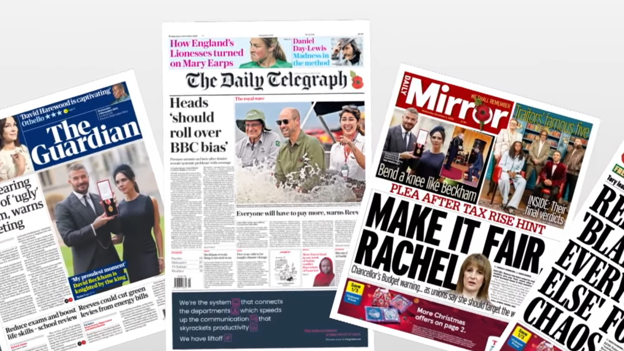 Daily Telegraph flet për një taksë të re pagese për milje për shoferët e automjeteve elektrike që do të zbulohet në Buxhet. Gazeta raporton gjithashtu për akuzat e informatorëve se mbulimi i çështjeve transgjinore nga BBC është subjekt i “censurës efektive” nga gazetarët që refuzojnë të mbulojnë histori kritike ndaj gjinisë. I pyetur nga BBC News, një zëdhënës i BBC tha: “Ndërsa nuk komentojmë për dokumentet e rrjedhura, kur BBC merr reagime, i merr seriozisht dhe i shqyrton me kujdes. Ne kemi ndërmarrë një numër veprimesh në lidhje me raportimin tonë për seksin dhe gjininë, duke përfshirë përditësimin e udhëzuesit të stilit të lajmeve dhe ndarjen e udhëzimeve të reja, duke e bërë Redaktorin tonë të Çështjeve Sociale përgjegjës për këtë mbulim, dhe aty ku ka pasur shqetësime në lidhje me histori të veçanta, ne i kemi adresuar ato. Ne vazhdimisht e rishikojmë mbulimin tonë për të reflektuar zhvillime të tilla si vendimi i fundit i Gjykatës Supreme.”
