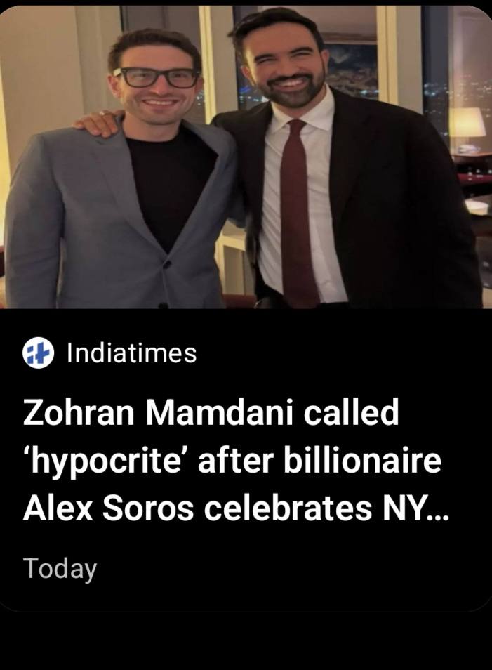 India Times – “Zohran Mamdani called ‘hypocrite’ after billionaire Alex Soros celebrates NYC mayoral win”