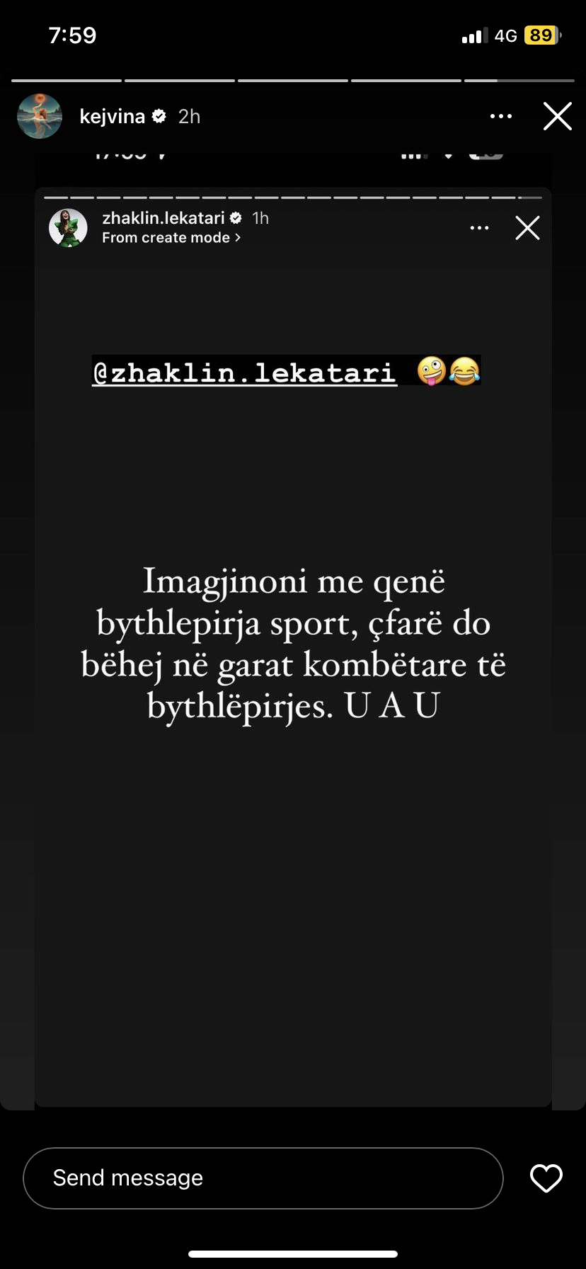 Ish-opinionistja Zhaklina Lekatari nëpërmjet një story në Instagram shkruan: ‘Imagjinoni me qenë bythlëpirja sport, çfarë do bëhej në garat kombëtare të bythlëpirjes. U A U.’
