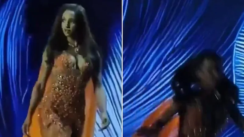 ‘Miss Universe’ Jamaica, Gabrielle Henry u pengua dhe u rrëzua në skenë gjatë natës paraprake të konkursit të bukurisë së ‘Miss Universe’ në Tajlandë, dhe pamjet po qarkullojnë në mediat sociale.