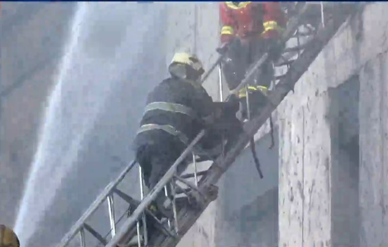 Ndërkohë, siç duket edhe nga pamjet forcat zjarrfikëse me anë të shkallëve të tyre kanë mundur të nxjerrin një grua prej godinës.